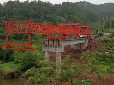 架桥机用于架设公路预应力钢筋混凝土简支梁,属于单臂简支,用于架设大跨度简支梁(T梁、箱梁和工字梁),可以架设直桥、斜桥和曲线桥。因为机臂可以上下起伏,前后伸缩,左右摆头,设置斜桥(0-45)o),坡桥百分之五,小曲线(小于200米)桥特别方便,不需要增加,其他构件被拆除。